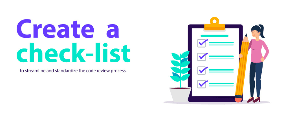 One way to streamline and standardize the code review process is by creating a code review checklist. With a checklist in hand, reviewers need not rack their brains trying to remember all the things they need to look out for and can instead focus on actually conducting the review. The checklist can be modified based on your business needs, but some standard criteria may include the legibility of the code, how secure it is, and the amount of test coverage.