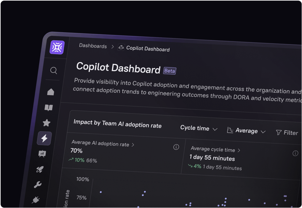 Get a clear view of how AI is changing your engineering org with the Copilot Dashboard. Understand adoption & usage and its impact on critical engineering metrics, including deployment frequency, change failure rate, & incidents.