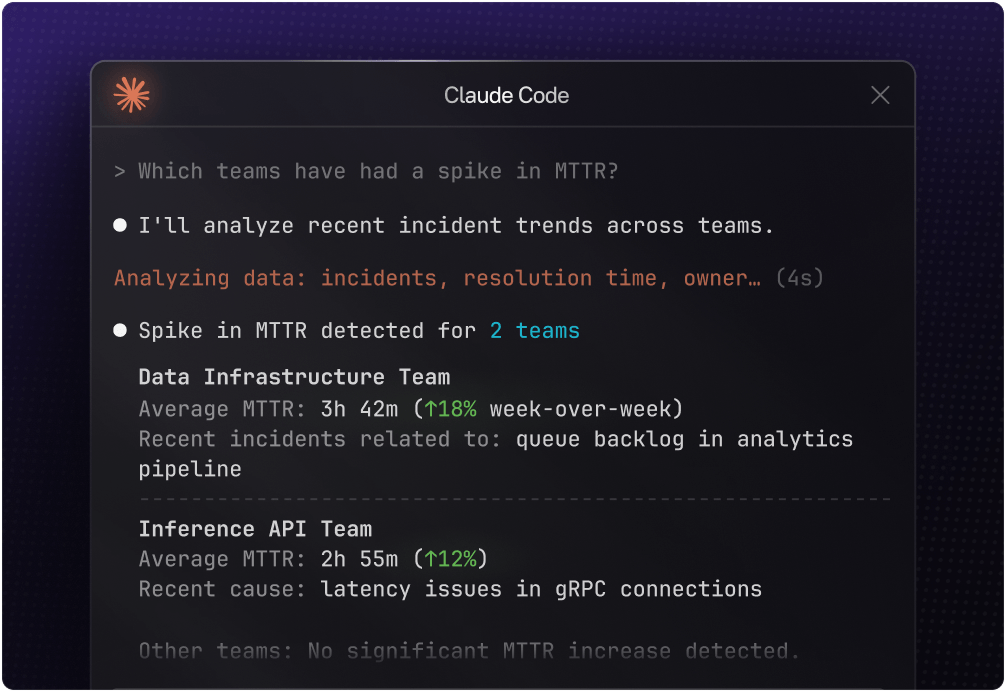 Access Engineering Intelligence data using Cortex’s MCP in your AI assistant. Ask about cycle time, incidents, or bottlenecks — no need to dig through reports.