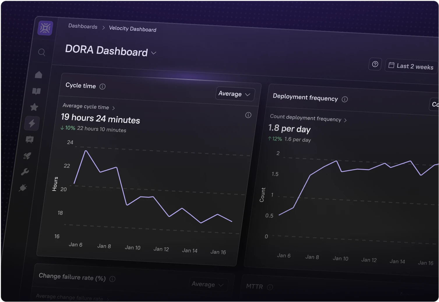 Cortex Engineering Intelligence helps leaders understand how work is progressing, where teams get stuck, and what needs to change. It connects day-to-day activity with long-term goals so you can drive improvement across velocity, reliability, and efficiency.
