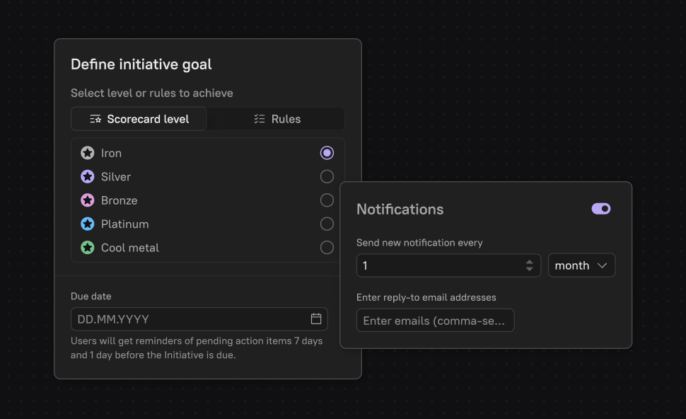Scorecards enable you to drive alignment on best practices or make progress against short-term initiatives like migrations, version EOL, and compliance