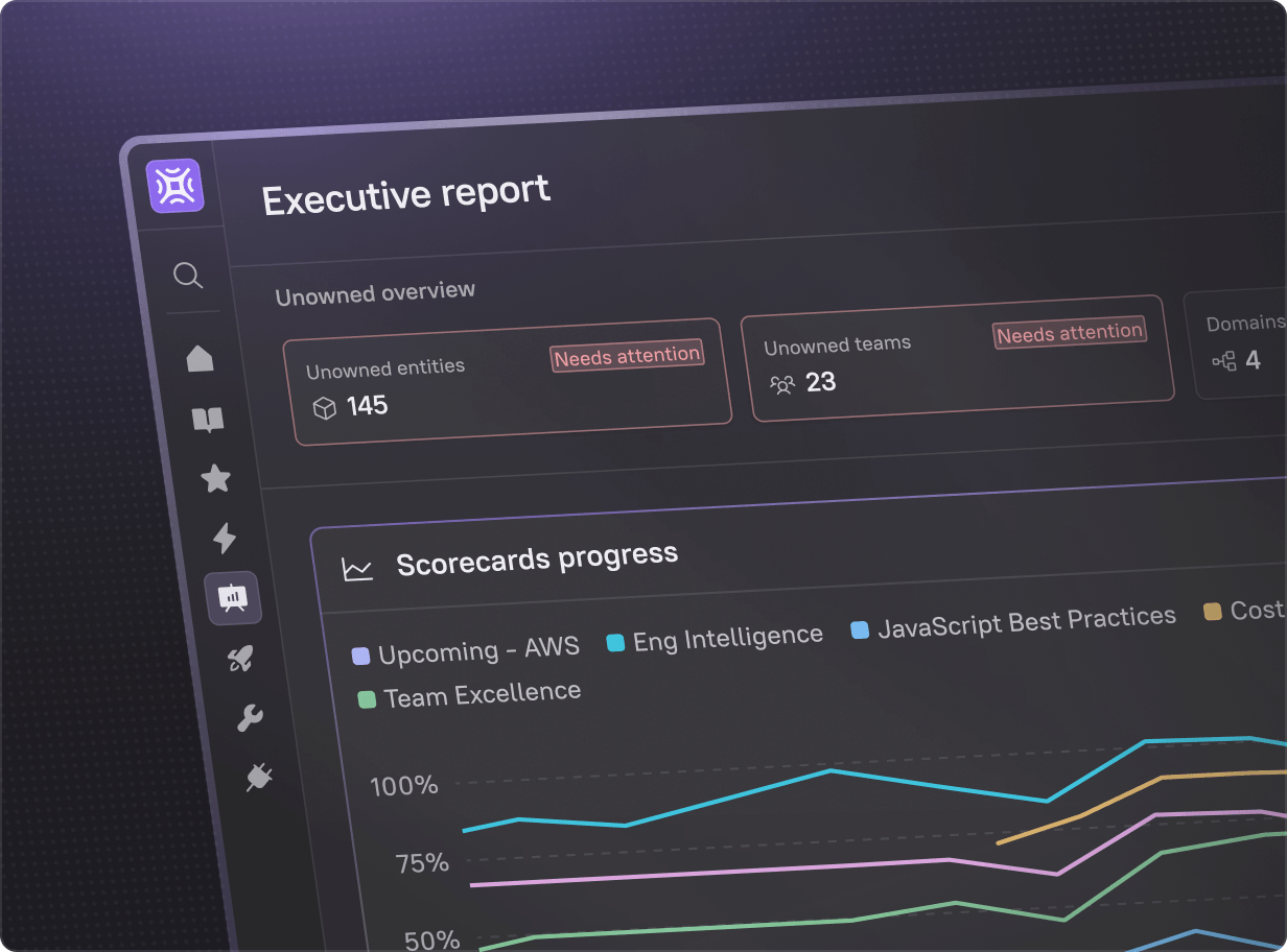 Get unified visibility across reliability, security, velocity, and efficiency. Know which initiatives are on track, which teams need support, and where bottlenecks exist, without chasing down status updates.